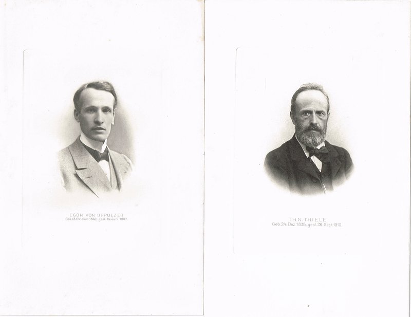 Aus Nachrufen in der Vierteljahresschrift der Astonomischen Gesellschaft in Leipzig. Vertreten sind unter anderem Johann Gottfried Galle (Mitentdecker des Planeten Neptun), Egon von Oppolzer, Giovanni Virginio Schiaparelli (Entdecker der vermeintlichen Marskanäle) und Thorvald Nicolai Thiele.