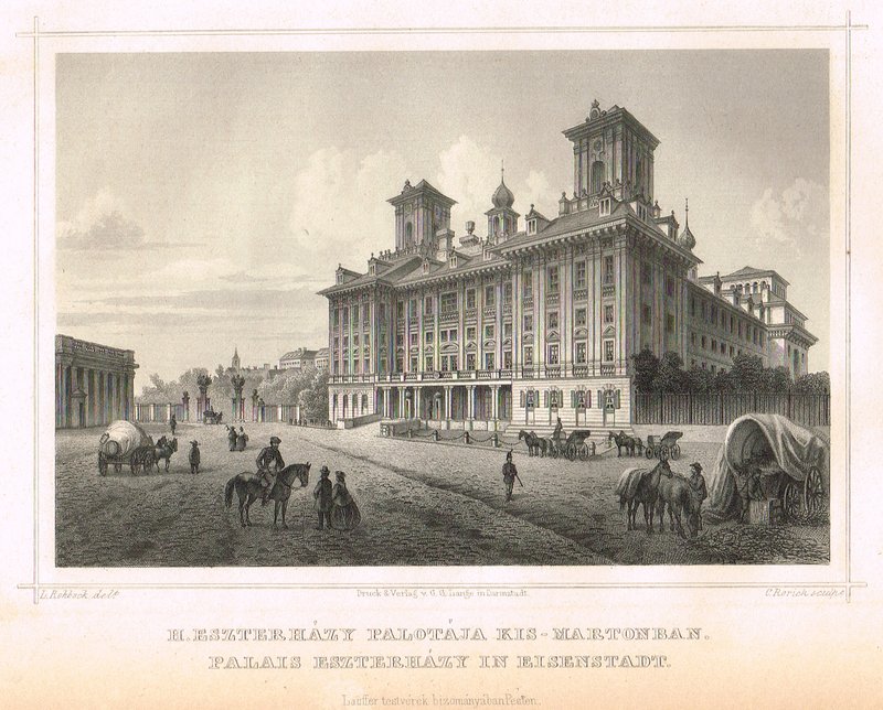 "H. Eszterházy Palotája Kis-Martonban. Palais Eszterházy in Eisenstadt." Stahlstich von C. Rorich nach Ludwig Rohbock aus L. Rohbock - J. Hunfalvy, Ungarn und Siebenbürgen in malerischen Original-Ansichten, 2. Bd., Darmstadt 1860/1863, 11 x 16 cm. - Leicht gebräunt.