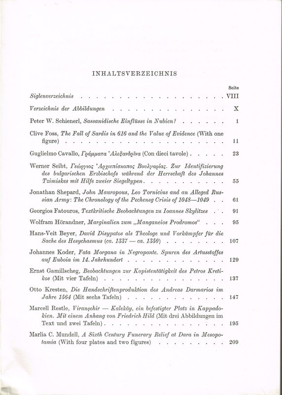Mit zahlreichen wissenschaftlichen Beiträgen und Rezensionen. Die Reihe bildet die Fortsetzung des Jahrbuchs der Österreichischen Byzantinischen Gesellschaft.