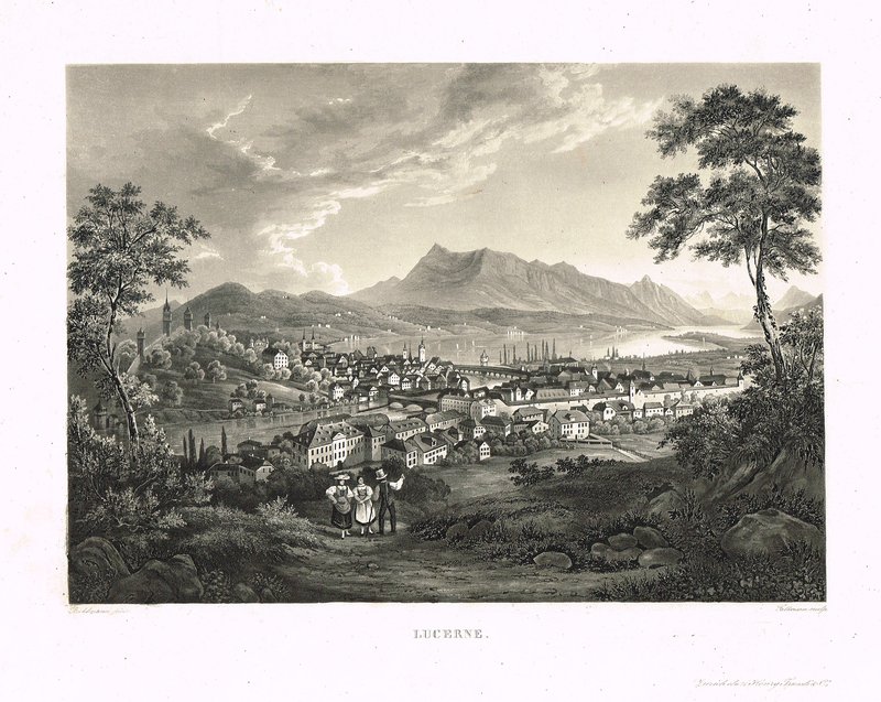 "Lucerne." Aquatinta von Johann Jakob Falkeisen nach Johann Rudolf Bühlmann bei Henry Füssli, Zürich um 1840, 20 x 28 cm. - Im weißen Rand minimal fleckig.