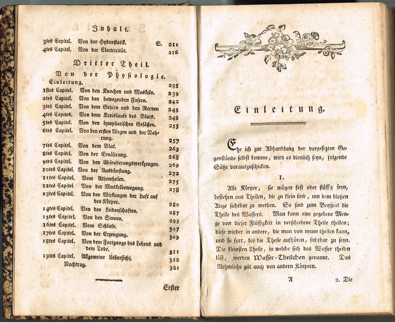 Anfangsgründe derjenigen Theile der Naturlehre welche mit der Arzeneywissenschaft in Verbindung stehen. Aus dem Englischen übersetzt von D. Aug. Wilhelm Bertram. Leipzig, Paul Gotthelf Kummer, 1784. In-8; 6 Bll., 336 pp, vier Falttafeln, einige Vignetten; Pp. d. Zt. mit Papierschildchen (etwas berieben und fleckig); kleiner Stempel auf Titel, überwiegend gebräunt bzw. stockfleckig, einige Seiten eselsohrig, vereinzelte Marginalien.