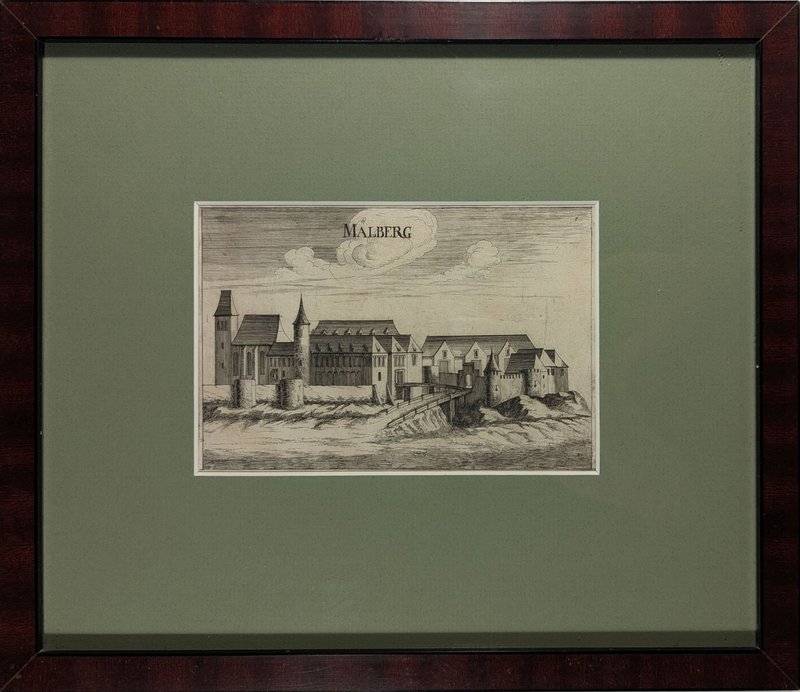 "Mälberg". Kupferstich aus G. M. Vischer, Topographia Archiducatus Austriae Inf: Modernae, 1672, 10 x 15 cm. - Das Schloß der Malteser-Kommende mit der Kirche. - Gerahmt.