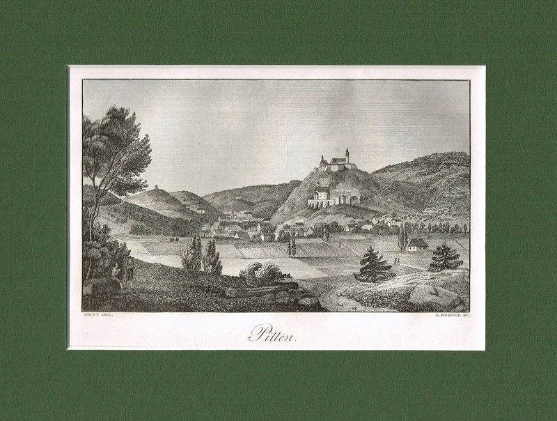 "Pitten." Kupferstich von Anton Bogner nach J. Wett aus F. X. Schweickhardt von Sickingen, Darstellung des Erzherzogthums unter der Ens, 1832, 9 x 15 cm. - Unten hart beschnitten.