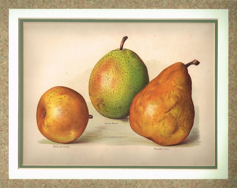 "Olivier de Serres - Easter Beurré - Nouvelle Fulvie." Chromolithographie aus John White, The Fruit Grower's Guide, London 1891, Blattgröße 21 x 27,5 cm.
