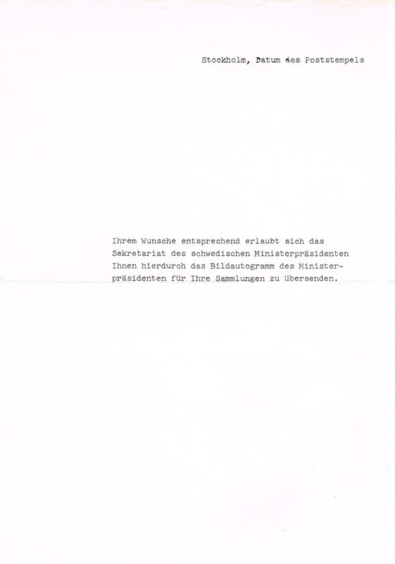 Wohl um 1975. - Der schwedische Ministerpräsident wurde am 28. Februar 1986 im Zentrum Stockholms unter nie ganz geklärten Umständen auf offener Straße erschossen.