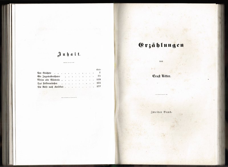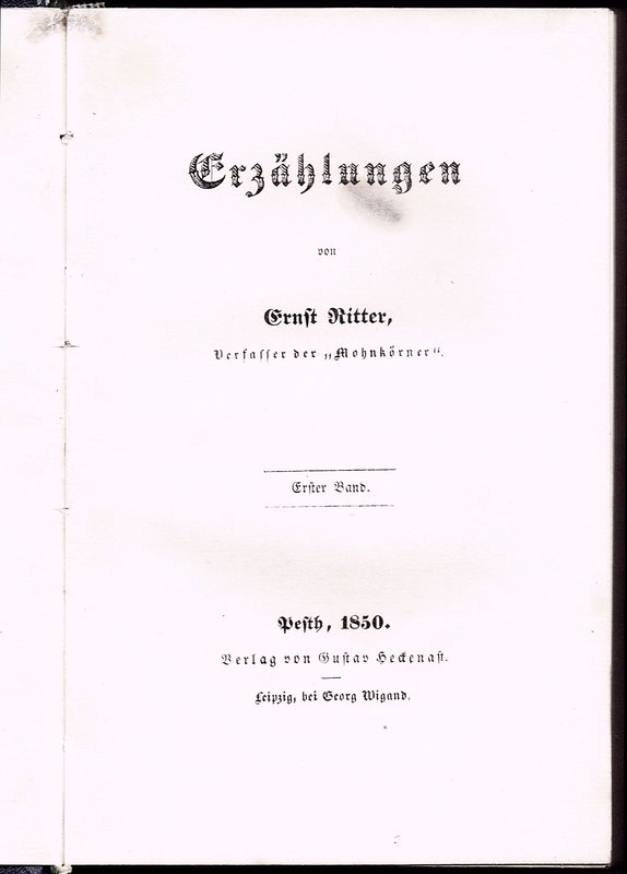 Erzählungen. 2 Bde. in 1 Bd. Pesth, G. Heckenast, 1850. In-8; 4 Bll., 215, (1) pp; 2 Bll., 202, (1) pp; insges. 417 pp, späteres Halbleinen (Buchblock gebrochen); die ersten Seiten mit abnehmendem Braunfleck, sonst nur vereinzelt etwas stockfleckig.