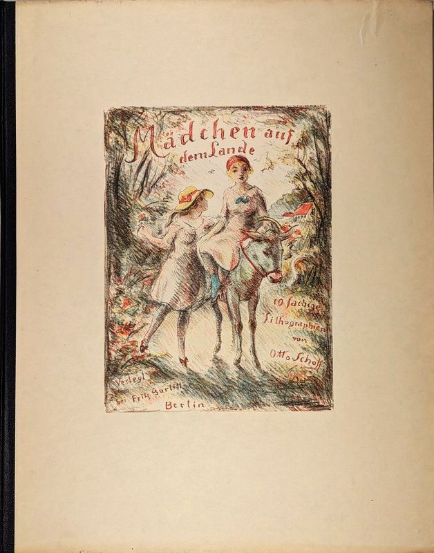 "Mädchen auf dem Lande". Berlin, Fritz Gurlitt, [1922]. Halbleinen-Flügelmappe mit unbedrucktem Schutzumschlag, aufgezogener farbiger Lithographie als Deckeltitel und acht (von zehn) lose auf Kartonblättern montierten signierten Lithographien in Sepia oder Rötel; in-folio. - Leichte Alters- und Gebrauchsspuren, der Schutzumschlag stärker angeschmutzt und lädiert