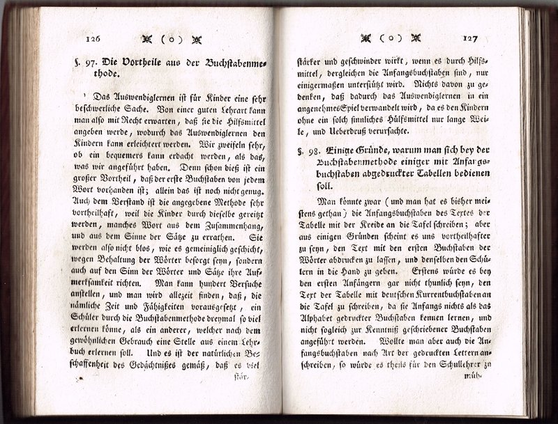 Entwurf zur Einrichtung deutscher Schulen. Wien, Verlag der deutschen Schulanstalt, 1774. Kl-8; 252 pp mit einigen Vignetten; zeitgenössischer Pappband mit Kleisterpapierbezug (etwas berieben, Rücken geschossen); leichte Alters- und Gebrauchsspuren, Titel dezent gestempelt, die letzten Seiten mit Wurmspur im Falz.