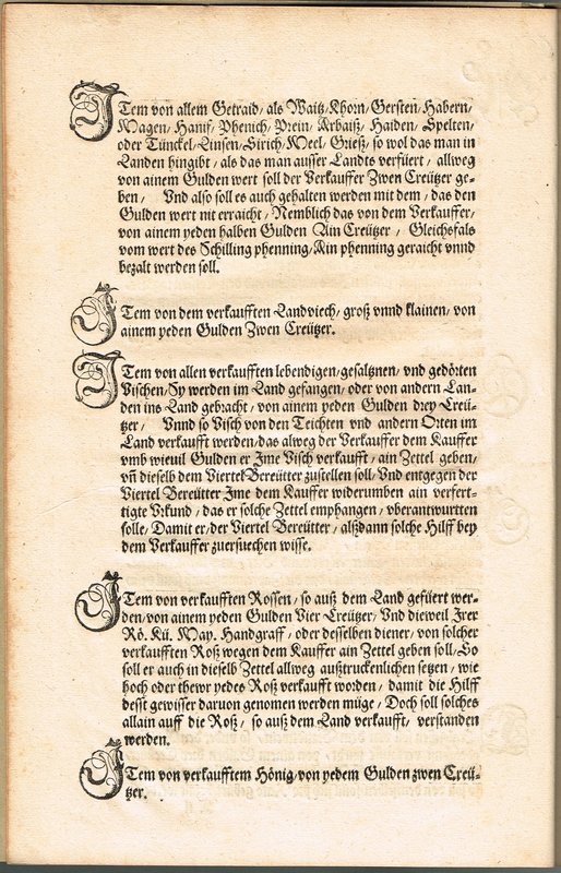 VD16 N 1666; vgl. auch Denis 552 und Mayer 224. - Interessante, gut lesbare Steuerbewilligung ("Türkenhilfe") der niederösterreichischen Stände unter Ferdinand I. (hier als "römische künigliche Majestät" angesprochen) im Kampf gegen die Türkennot. Verhängt werden Konsumsteuern auf alkoholische Getränke, Lebensmittel, Textilien, Geschirr und Schmuck, Ausführsteuern für Pferde, Abgaben für Handwerker und Unterhaltungskünstler sowie Umsatzsteuern für ausländische Händler. Die Bewilligung ist in verschiedenen Varianten aus demselben Jahr bekannt, worunter sich auch eine mit der Druckerangabe Hans Singriener findet. Unser Exemplar entspricht jenem der Bayerischen Staatsbibliothek und wird von VD 16 der Wiener Offizin von Raphael Hoffhalter und Kaspar Kraft zugewiesen.