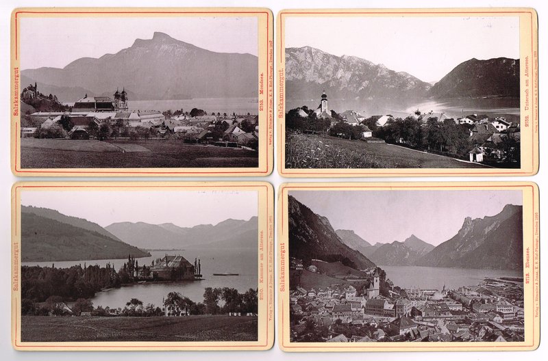 Umfasst: Mondsee - Unterach am Attersee - Kammer am Attersee - Ebensee - St. Gilgen - St. Wolfgang und Schafberg - Leuchtthurm bei St. Wolfgang - Ischl, vom Siriuskogel - Rettenbachwildnis bei Ischl - Lauffen bei Ischl.