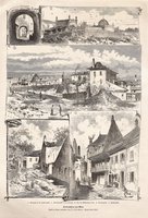 "Bombardement der Franzosen gegen die Stadt Wien. - Erzherzog Karl in der Schlacht bei Aspern." Zwei Kreidelithographien mit Tonplatte aus Anton Ziegler, Vaterländische Bilder-Chronik aus der Geschichte des österreichischen Kaiserstaates Bd. 3, Wien 1846, je 22,5 x 15 cm. - Mit viersprachiger Beschriftung in der Bordüre. Im weißen Rand geringfügig gebräunt.
