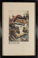 "Velden a. Wörthersee". Signierte Farbradierung von Hertha Czoernig-Gobanz (1886-1970), 12 x 16 cm. - Kleine druckbedingte Flecken im breiten weißen Rand.