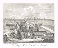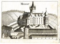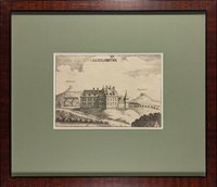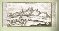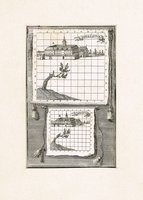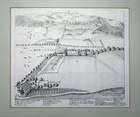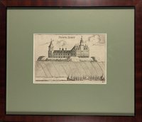 "Keresztur". Kupferstich aus A. E. Burckhard von Birckenstein, Ertz-Herzogliche Handgriffe Deß Zirckels und Linials, 1658/1713, 16 x 10 cm. - Zweifache Darstellung des Schlosses in großem und kleinem Rasterfeld. - Ergänzter Eckabriss links oben, restaurierter kleiner Oberflächenschaden am linken Rand, fest mit Passepartout verklebt.
