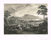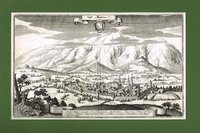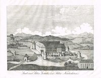 Österr. Kunsttopographie 40, 78 und Abb. 41; vgl. Wurzbach 55, 183 und Hirsch-H. 5, 915; nicht in Fauser. - Detailreicher Vogelschaublick von Süden auf den Ort mit Schloss, Sauerbrunnen, Badeanlagen und Nebengebäuden; vorne der Weg nach Schlaining, im Hintergrund die Ortschaften Bernstein, Jormansdorf, Hochneukirchen u. a.; unter dem Bild Legende A-W. Zweitälteste Ortsansicht (nach einer Darstellung in einer Regensburger Chronik von 1621) und von größter Seltenheit. Wetsch führte als erster eine wissenschaftliche Untersuchung des Tatzmannsdorfer Sauerwassers durch und veröffentlichte die Ansicht im Anhang zu seiner Dissertation, dort gefaltet und mit noch rudimentärer Legende (nur "K. Ursprung des sauer Brunnes"). Bei unserem Exemplar (ungefaltet) sind zwei Beschriftungen im Bild hinzugefügt und die Legende auf 25 Angaben erweitert worden; vermutlich liegt hier der einzige bisher bekannte Abdruck von der fertiggestellten Kupferplatte vor. Weiterlesen