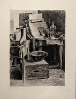 "Ätzwerkstatt". Signierte Kaltnadel-Radierung, wohl um 1910, 31,5 x 23 cm. - Mängel im breiten weißen Rand.