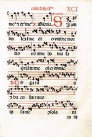 Einzelblatt (Fol. 91) mit Quadratnoten auf 4 Linien aus einem Antiphonar um 1600(?), Blattgröße 41 x 27 cm, Druck in roter und schwarzer Rotunda. - Minimal feuchtrandig.