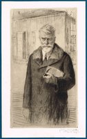 Der in Temeswar geborene Maler und Graphiker unterrichtete in Wien und schuf zahlreiche Serien von Stichen und Radierungen. Das vorliegende Blatt entstand zu seinem 70. Geburtstag und erschien auch unsigniert und mit typographischer Beschriftung in "Die Graphischen Künste" Jg. 52 (1929). Weiterlesen
