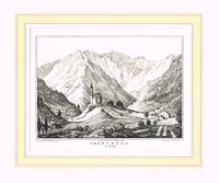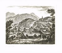 "Döllach im Gailthale." Lithographie aus Joseph Wagner, Album für Kaernten, Klagenfurt 1845, 13 x 18 cm. - Gesamtansicht. - Im breiten Rand leicht fleckig.