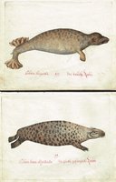 "Phoca hispida. Die rauche Robbe" - "Phoca tersa digitata. Die glatte gefingerte Robbe". Zwei altkolorierte Kupferstiche wohl des 18. Jahrhunderts, händisch beschriftet und numeriert, Plattengröße je 19 x 24 cm. - Stellenweise leicht fleckig oder knittrig.