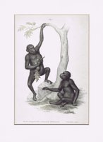 "Der Schimpanse oder afrikanische Waldmensch. Troglodytes niger." Chromolithographie aus L. J. F. J. Fitzinger, Bilder-Atlas, Wien 1864, Blattgröße 31 x 24 cm.