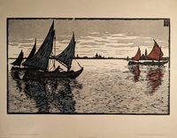 "Abend vor Venedig". Farbholzschnitt auf Bütten mit typographischer Bezeichnung im Unterrand, im Stock monogrammiert und datiert CT[19]10, Verlag der Gesellschaft für vervielfältigende Kunst (Wien), 30 x 50 cm. - Breitrandiges Blatt in ausgezeichneter Erhaltung.