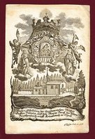 "Prima Deo. / Quamdiu est indice concors." Allegorischer Kupferstich um 1750, 13 x 8 cm. - Putto mit Spruchband vor Sonnen- und Pendeluhr, oval umrahmt von Bordüre mit Herrschaftsinsignien (Kronen und Szepter); unter dem Bild Zitat aus Livius. - Hart und etwas ungleichmäßig beschnitten, etwas fleckig.