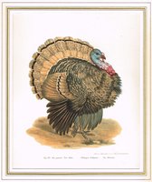 "Das gemeine Trut-Huhn (Meleagris Gallopavo). Das Männchen." Chromolithographie aus L. J. F. J. Fitzinger, Bilder-Atlas, Wien 1864, Blattgröße 31 x 24 cm.
