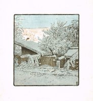 Winter. Farbholzschnitt auf dünnem Japanpapier, um 1904, im Stock monogrammiert AZ, Bildformat 17,5 x 16 cm, Blattgröße 27,5 x 24 cm. - Eventuell Probedruck. Das Blatt erschien auf anderem Papier und mit typographischer Beschriftung auch in "Die Graphischen Künste" Jg. 27 (1904).
