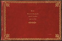 "Der Freundschaft und Liebe geweiht" (Deckeltitel). Biedermeier-Stammbuch (Rückentitel: "Denkbuch"), angelegt 1829 von einer jungen Frau aus bürgerlichem Milieu im heutigen ungarisch-österreichischen Grenzgebiet, mit über 50 Eintragungen in meist gut lesbarer deutscher Schreibschrift, 5 Zeichnungen (davon 2 farbig), einem Scherenschnitt sowie etlichen unbeschriebenen Seiten. Quer-kl-8; dekorativer zeitgenössischer roter Leinenband mit reicher Deckel-, Rücken- und Kantenvergoldung sowie Goldschnitt (etwas berieben, vorderes Innengelenk geplatzt); stellenweise leicht bis stärker stockfleckig, insgesamt gut erhalten.