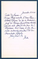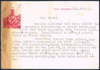 Maschinschriftliche Briefkarte mit eigenhändiger Unterschrift und zwei kleinen handschriftlichen Korrekturen, Györ (Bischofssitz), 5. 2. 1944. - An seinen Bruder Gábor mit der Bitte um Nachforschungen über einen Bekannten. "Édes Gábor! Remélem megkaptad mult héten küldött levelemet. Felhasználom az induló futárt, hogy ujból hirt adjak mangunkról. Hála Istennek egészségesek vagyunk. Erdeklödéssel és szorongó szivvel lessük az ottani hireket. / Amennyiben levelest tudsz küldeni, légy szives tudatni van-e valami hir ZICHY LÁSZLÓ-ról Zichy Ödön testvéréröl, akinek lakcime: Salo. Brescia. Lago di Garda Via del Lupo 604. Az itteni rokonai már nyolc hónapja nem kaptak semmi hirt róla. Egyben megkértem Rubido Ivánt is, hogy szerezzen hirt róla, de a rokonság gondolja, hogy talán tudsz valamit róluk. / Itt annyira enyhe tél van, hogy félni kell attól, hogy megindul a növényzet virágzása s azután mégis elpusztitja a fagy. / Sokat gondol rád, édes Gabór és szivböl ölel szeretö öcséd Vilmos". (Lieber Gábor! Ich hoffe, du hast meinen Brief von letzter Woche erhalten. Ich nutze den ersten Boten, um dir erneut Nachrichten von uns zu überbringen. Gott sei Dank sind wir alle gesund. Mit Interesse und bangendem Herzen verfolgen wir die Nachrichten von dort. / Wenn du einen Brief schicken kannst, lass mich bitte wissen, ob es Neuigkeiten über ZICHY LÁSZLÓ gibt, den Bruder von Zichy Ödön, dessen Adresse lautet: Salo. Brescia. Lago di Garda Via del Lupo 604. Seine Verwandten hier haben seit acht Monaten nichts mehr von ihm gehört. Ich habe auch Rubido Iván gebeten, etwas über ihn herauszufinden, aber die Verwandten denken, dass du vielleicht etwas über ihn weißt. / Der Winter ist hier so mild, dass zu befürchten ist, dass die Pflanzen zu blühen beginnen und dann doch vom Frost zerstört werden. / Ich denke oft an dich, lieber Gabór, und umarme dich von ganzem Herzen, dein dich liebender Bruder Vilmos". - Fleckig, ein Papierrand stark gebräunt und knittrig.