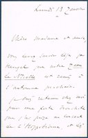 Eigenhändiger Brief mit Unterschrift, 3 Seiten, kl-8, ohne Ort, 13. 1. [1882]. - An eine Sängerin. "Chère Madame et amie, vous devez savoir déjà par Heugel que notre Jean de Nivelle est remis à l'automne prochain. Je suis retenu chez moi par une forte bronchite que j'ai prise au concert de l'Hippodrome, et dès que je serai mieux, je viendrai causer avec vous. / Mais je ne veux pas prendre une minute pour vous informer d'une chose qui touche à vos intérêts et qui peut changer vos projets d'avenir; en même temps laissez moi vous dire que dans quelques conditions que soit representé mon ouvrage, je tiens pardessus tout à ce que le rôle de Simone soit crée par vous! / Veuillez croire, chère Madame, à toute ma sympathique admiration / Léo Delibes". - Mit zwei vom Schreiber überarbeiteten Tintenspritzern.