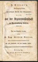 Vgl. Poggendorff 1, 659. - Deutsche Ausgabe von "Elements of the Branches of Natural Philosophy connected with Medicine" (London 1782), einem noch von der Phlogiston-Theorie beeinflussten Werk des englischen Arztes, Apothekers und Naturforschers John Elliot (1747-1787). Elliot zählt zu den Pionieren der modernen Farbenlehre; angeklagt wegen eines Mordversuchs an einer Frau, entzog er sich dem Prozess durch Verhungern. - Selten. Weiterlesen