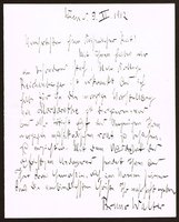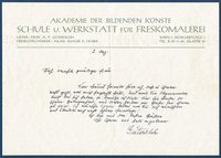 Eigenhändiger Brief mit Unterschrift, 1 Seite, quer-8, Wien (Briefkopf der Akademie der Bildenden Künste), 2. 12. (wohl um 1950). - An Emma Maria Thoma, die spätere Frau des Schriftstellers Heimito von Doderer. "Sehr verehrte gnädige Frau / Von Freund Heimito höre ich, daß es Ihnen wohl geht, was mich herzlichst freut. Und weil Sie Obgenannten bald bei sich haben, so benütze ich diese für sie beide so schöne Gelegenheit, mit diesen Zeilen im Geiste bei Ihnen zu sein. Ich wünsche Ihnen Alles, was Sie sich wünschen und überdies noch recht schöne Feiertage! Ich bin mit den besten Grüßen Ihr Ihnen wie stets ergebener Gütersloh". - Beiliegend ein maschinschriftliches Schreiben des Kunsthistorikers Heribert R. Hutter (1926-2012) an den emigrierten Juristen und Gütersloh-Sammler Robert C. Baru in den USA betreffend ein in Arbeit befindliches Buch über Gütersloh, Wien, 21. 7. 1976 (das Werk erschien im folgenden Jahr).