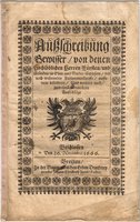 Selten. - Das Edikt behandelt detailreich eine Reform des Abgabenwesens in Schlesien, das damals zum Königreich Böhmen gehörte, und enthält ausführliche Bestimmungen zu Konsum- und Einfuhrsteuern auf alkoholische Getränke, Lebensmittel und Vieh sowie zu Abgaben auf Rauchfänge. Besondere Kapitel betreffen die Juden (die 1455 nach einem Progrom aus Breslau ausgewiesen worden waren) sowie Landstreicher und ausländische Händler, denen ebenfalls Beiträge "dem bono publico zum Frommen" abverlangt werden. Enthalten sind ferner einige Musterformulare für Steuereide. - Unter den Habsburgern übten die Fürsterzbischöfe von Breslau üblicherweise auch das Amt des Oberlandeshauptmanns aus. Weiterlesen