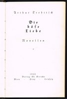 Die böse Liebe. Novellen. Wien - Prag - Leipzig, Ed. Strache, 1920. In-8; 223, (1) pp, 4 Bll.; goldgepr. Orig.-Halblederband mit Rückentitel, Deckelmonogramm AT und Kopfgoldschnitt (Rücken stärker berieben). - Nr. 15 von 30 numerierten Exemplaren, im Druckvermerk vom Autor signiert.