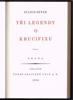 Tri legendy o krucifixu. Praha, Ceská grafická unie, 1925. Gr-8; 77 pp mit 3 Orig.-Radierungen, 1 Bl., je 1 weißes Blatt vor- udn nachgebunden; dekorativer schwarzer Leinenband (Lederimitat) auf 5 Bünden mit goldgepr. Rückentitel, Deckelvignetten, Goldfileten und Goldschnitt. - Eines von 550 numerierten Exemplaren.