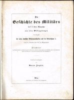 Die Geschichte des Militärs der k.k. österr. Monarchie aus allen Waffengattungen mit Inbegriff der alten deutschen Wehrmannschaften und des Ritterthums &c. von der frühesten Zeit bis zur Gegenwart. Wien, Eigenverlag, (um 1852). In-4; 160 pp, 60 altkolorierte lithographierte Tafeln (nicht ganz wie vorgegeben eingebunden); späterer marmorierter Pappband (Kanten berieben); teilweise etwas stock- oder fingerfleckig, der Text mehr als die Tafeln. - Selten.